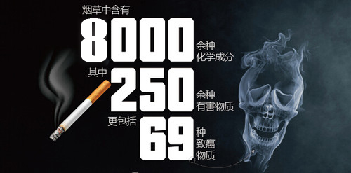 根據世界衛生組織(WHO)的數據,全球非吸煙者因接觸煙草煙霧而死亡的人數,每年超過60萬。其中,兒童約占三分之一。二手煙的煙霧中包含4000種化學物質。其中含有焦油、阿摩尼亞、尼古丁、懸浮微粒、PM2.5、釙-210等至少250種有害物質,和69種已知的致癌物質。 二手煙實際上由兩種煙霧構成。一種是吸煙者呼出的煙霧,稱為主流煙;一種是香煙燃燒時所產生的煙霧,稱為分流煙。這些煙霧是如何傷害我們身體的呢? 大致來說,香煙點燃后產生的對人體有害的物質,可分為六大類: ※ 醛類、氮化物、烯烴類。這些物質刺激呼吸道。 ※ 尼古丁類。這類物質刺激神經,讓人上癮。 ※ 胺類、氰化物和重金屬。這些都是毒性物質,會長期沉積在體內,難以排出。 ※ 苯丙芘、砷、鎘、甲基肼、氨基酚等。這些物質都具有放射性和致癌性。 ※ 酚類化合物和甲醛等。這些物質具有加速癌變的作用。 ※ 一氧化碳。一氧化碳與血紅蛋白結合,降低紅血球將氧氣輸送到全身的能力,使血液中的氧氣含量減少。