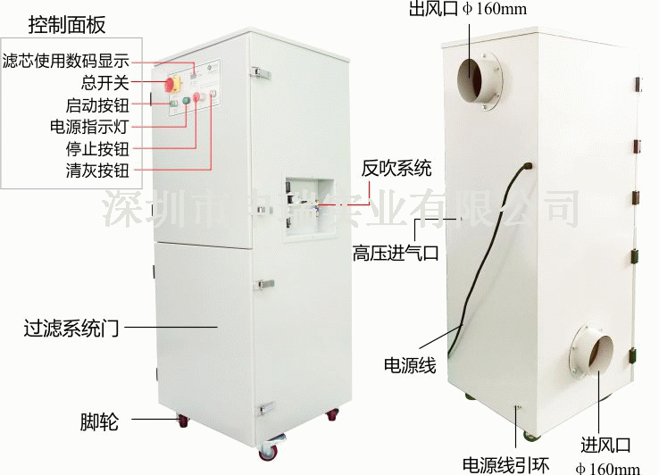 四、配置防爆凈化設備 申瑞深耕工業廢氣處理20年,研發的一款可以用于易燃、易爆粉塵場所的煙塵、粉塵凈化專用煙塵凈化器。該設備通過了粉塵防爆認證,適合易燃、易爆粉塵場所的空氣凈化。具有風量大、負壓高、自動化程度高、穩定可靠、節能、占地面積小、使用方便等一系列優點,能滿足一般清潔生產要求和一些特殊工況要求,能直接吸收其它機器或者特殊作業過程中產生的金屬大顆粒物和粉塵、煙霧、碎屑等。適用于激光打標大面積金屬和非金屬材料、電焊、機械磨床、手工打磨、研磨、噴砂、攪拌、切削、袋裝、有機玻璃加工、震動篩網、空氣輸送、包裝等作業的煙塵、粉塵收集凈化。該設備特別適合于鋁合金鎂合金打磨、面粉加工廠、家具廠等產生的易燃易爆粉塵場所。